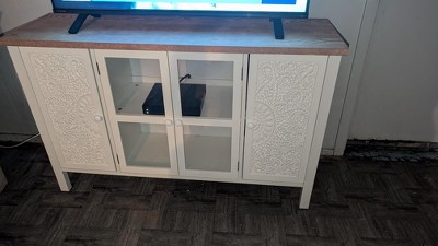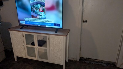 47"W Storage Cabinet Retro TV Stand Console Table Sideboard Accent Cabinet with Glass Doors and Adjustable Shelves, Black/White-ModernLuxe - 1 of 4