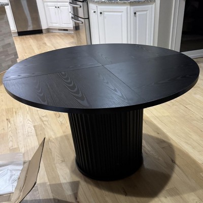 47Inch Round Dining Table for 4-6 People, Black Dining Room Table with Sturdy Waveform Metal Pedestal Base, Industrial Circle Kitchen Table for Home