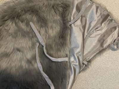 This is a really cute tree skirt for someone who likes the faux fur look. It is heavy duty with cute little ties on the top. The underneath is a really smooth silk. The grey color makes it really versatile too with design. It could be dressed up fancy with an upscale decor theme, or it could be used as woodland theme or country theme as well.