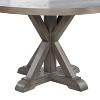 The Molly 48-inch round dining table offers contemporary lodge styling complimented by architectural designed timber base. Finished in a beautiful washed gray and crafted from select hardwood and oak veneers. You will be able to comfortably entertain four people around the round pedestal base table. Your purchase includes one round dining table.