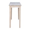 Love this table. Beautiful unfinished hardwood console table, looks beautiful in the living room. I may at some point use some "Feed-N-Wax" (Orange Oil and Beeswax) to bring out the natural grains and to protect it, but it's also just beautiful as is. Very high quality wood, easy to assemble with excellent quality screws, takes only a few minutes and everything you need is provided. I purchase the 48", my neighbor got the 60" for her large TV in her living room - both bring a soft and elegant look to the room. The tapered legs are a classy touch as well. Shipping is free, which is a huge bonus for a heavy item such as this. Overall very happy with this purchase.