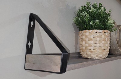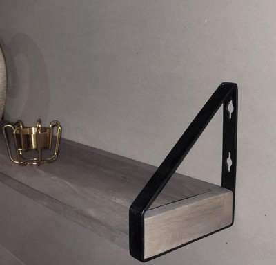 48" Solid Wood Ledge Wall Shelf with Rustic Metal Bracket Driftwood - InPlace