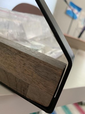 The shelf “wood” pattern and color looked really good in person, the color has brown/gray variants. The metal sides are sturdy. It does come with hardware, screws and wall anchors. I was hoping to use it for books, but there are only 4 inches of space with the lip running along the back. I was nervous getting it shipped, the box was a little beat up. There wasn’t a ton of packing material inside but it arrived with no dings or scratches.