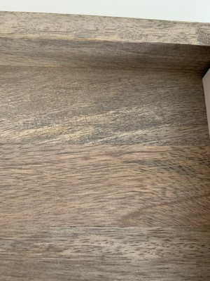 This is a very nice quality shelf. The color is a light greyish wood. The only reason for four stars is that, it’s very narrow, which I wasn’t expecting it to be quite that narrow. It could only be used to prop up picture frames or small Knick knacks. The other area of concern was the smell. When I opened the box, the order was very strong. A very strange smell. After letting it air out for a day or two in the garage, the smell completely went away.