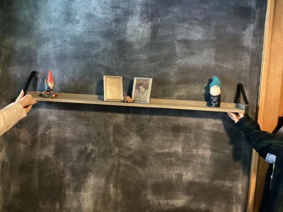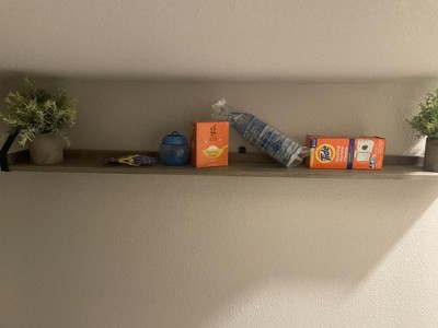 Great, sturdy shelf! I love the color with the black metal hardware! Easy to install with basic tools as well, just make sure you have a level of course! The length is perfect for the wall I put the shelf on. Definitely recommend!