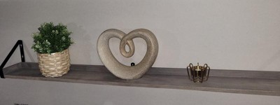 Love the color of rhe shelf and the overall look! Easy to add accent pieces and color to make it pop. I wish the actaul shelf was wider so I could add wider items/decor on it. Esasy to mount and super stylish!