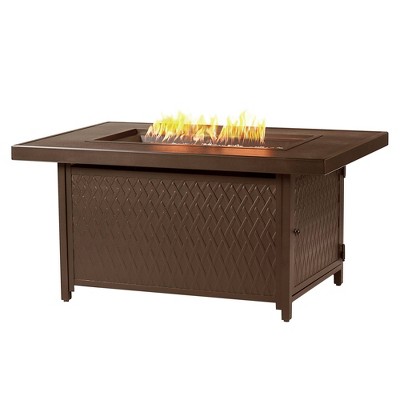 Bring the warmth and ambiance of this Rectangular 48 in. x 36 in. Aluminum Propane Fire Pit Table, Glass Beads, Two Covers, Lid, 55,000 BTUs in Brown Finish to your patio, deck or backyard. Featuring a stylish clean durable powder coated finish, this fire pit is complete with a durable rust-free solid aluminum design base, making it an attractive centerpiece for your outdoor living space. Complete with a 55,000 BTU stainless steel burner and integrated ignition, you can enjoy all the ambiance of a classic fire without the mess or danger of tending ashes. All of the complicated electrical and gas control components are preassembled unlike other fire tables. This fire pit comes with clear fire glass, a table lid, propane tank cover and a protective table fabric cover. The dimensions for the propane fire pit table are: 48" L x 36" W x 24.5" H, 83 lbs.
