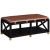 Perfect in your entryway, living room, or by the foot of your bed, this versatile bench lends a seat in any space. Crafted with a rectangular frame in a black finish, its removable brown cushion is padded with foam and upholstered with neutral-hued faux leather that's as easy to clean as it is to match. Button-tufted details dot the top for a touch of texture. This eco-friendly frame is constructed from rubberwood, a tropical, solid wood taken from rubber plantations.