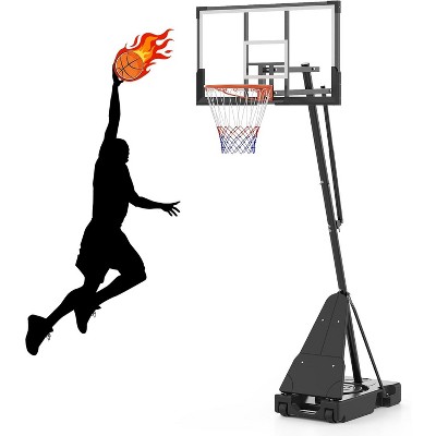 Bring the excitement of basketball to your driveway or backyard with this professional-grade adjustable hoop that grows with your family. You'll love how easily you can adjust the height from 4.9 to 10 feet to suit players of all ages and skill levels. The extra-wide 43-inch base provides outstanding stability when filled with sand or water, while the built-in wheels let you move the entire system effortlessly. Featuring a shatterproof backboard that withstands intense play and all-weather construction that lasts through seasons, this complete basketball set offers endless fun for kids and adults alike. Whether you're practicing solo shots or hosting neighborhood games, this durable hoop brings professional features to your home court.