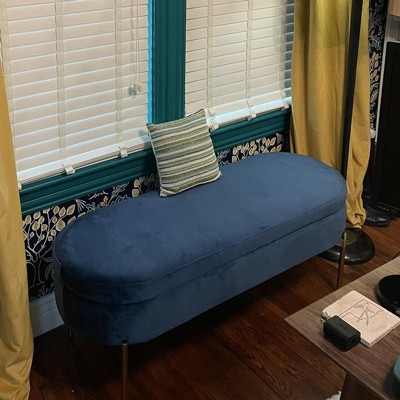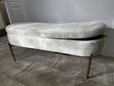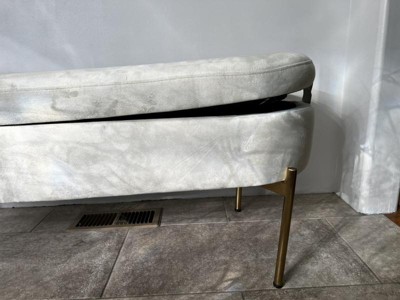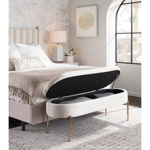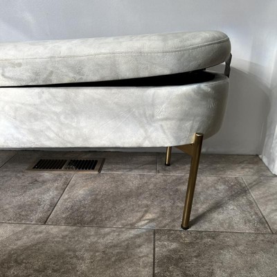 The Chloe Storage Bench by LumiSource provides convenient storage along with a stylish look. Perfect for extra seating, an entryway, or at the foot of a bed, the Chloe Storage Bench features velvet upholstery accented by a luminous gold metal base. Open the flip-top lid to find a roomy storage area where you can conveniently hide magazines, remote controls, and anything else you want to keep out of sight. Available in a variety of colors, choose the one that fits your glam area the best!