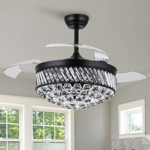 48" Crystal Fandelier Ceiling Fan with Light and Retractable Blades LED Dimmable for Bedroom Living Room