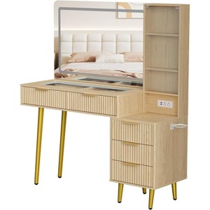 Designed specifically for small bedrooms, this vanity table maximizes corner space without compromising on style or storage. Its fluted wave texture not only enhances the aesthetic appeal but also provides a distinctive look that sets it apart from ordinary vanity tables. Whether you're getting ready for the day or winding down for the night, this makeup vanity table offers a convenient and stylish solution.