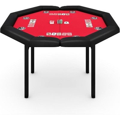 48" Folding Poker Table, Folding Game Table Padded Rails & Stainless Steel Cup Holders & Collapsible Metal Legs, 8 Players Octagon Casino Table for Texas Holdem Games