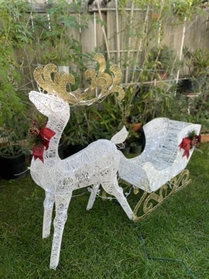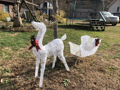 [This review was collected as part of a promotion.] Our 48" White Sisal Reindeer pulling 38" Sleigh with Red Bow each with 70 Cool White LED Lights-UL indoor and outdoor use is just so cute. It went together well, my grand daughter and I assembled it. Looked super cute in living room by tree, but moved it out on porch, so our pets leave it alone. We have had lots of compliments on it.
