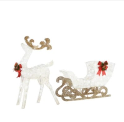 [This review was collected as part of a promotion.] I was so happy to receive this beautiful indoor or outdoor display for 48" White Sisal Reindeer pulling 38" Sleigh with Red Bow each with 70 Cool White LED Lights-UL indoor and outdoor use, now my house will look beautiful this holiday season.
