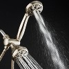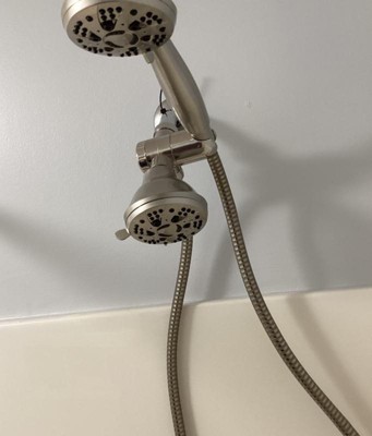 Luxury abounds with this premium brushed nickel combo shower head system that will not scratch, chip, or fade. You can choose from 6 individual shower selections on each showerhead for a total of 36 combinations. Large 4" Slimline face design for maximum water efficiency and flow coverage. Patented 3-way water diverter with Anti-swivel Lock Nut that helps direct the water flow. The 3-way diverter allows you to use each showerhead separately or combined. Each shower features a high-power 3-zone PrecisionFlo dial for superior water pressure. The rub-clean nozzles prevent clogging. The 6 flow settings include Rain, Massage, Mist, Pause, and two mixed modes. The extra-long stainless steel hose gives you maximum flexibility and versatility at your hands and rounding it off with a Large 4 in. head and brass fittings that completes the amazing features of this shower combo system. Also includes all washers, plumber's tape, and easy-to-follow instructions. Limited lifetime warranty with 100% hassle-free return policy directly from the manufacturer. Angle-adjustable overhead bracket for hands-free hand shower use and storage. Easy tool-free connection in minutes to any standard shower arm.