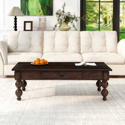 48" Solid Wood Coffee Table with Two Drawers and Storage, Square Tapered Legs, Ideal for Living Room or Family Room