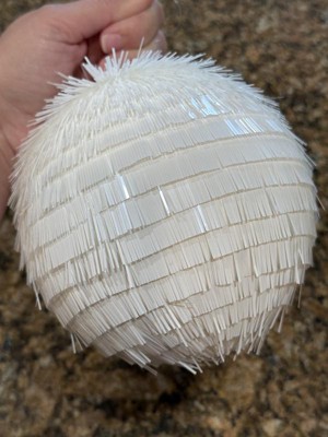 Spruce up the holiday charm with this 4-Count Christmas 150MM Tree Ornament Set from Wondershop™. This polystyrene ornament set includes four white round ornaments covered in layered fringe for a lovely look. Plus, each ornament has a built-in top loop for easy hanging from the branches of your tree.