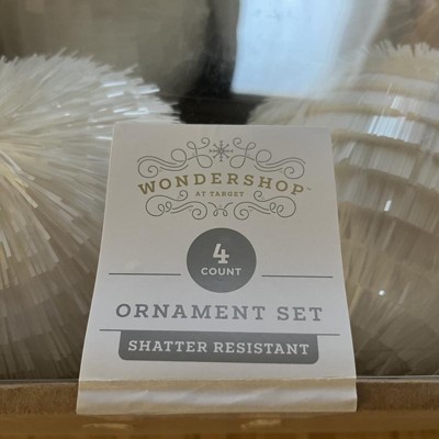 4ct 150mm Christmas Ornament Set White Fringe - Wondershop™
