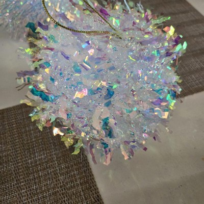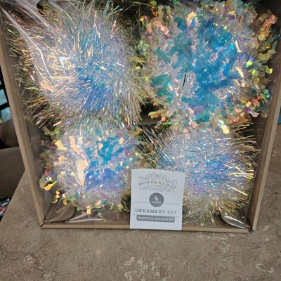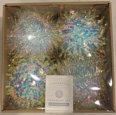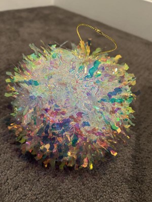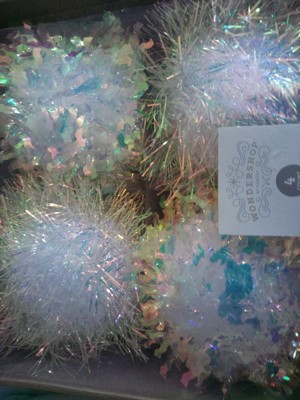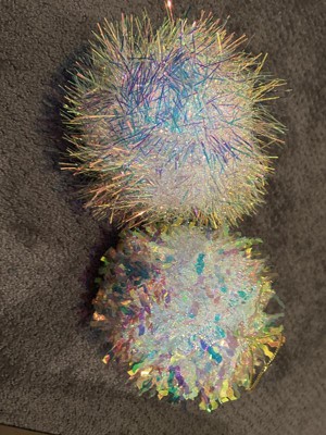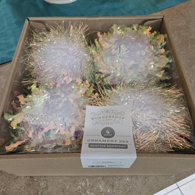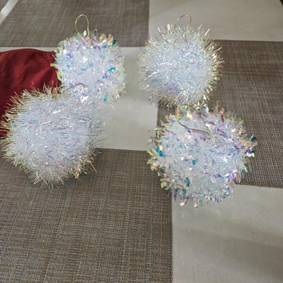 4ct 6" Christmas Iridescent Pom Pom Ball Ornament Set White - Wondershop™