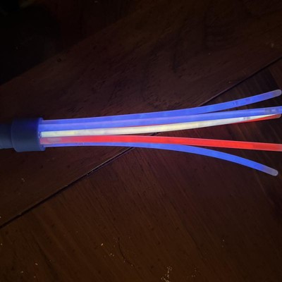 [This review was collected as part of a promotion.] These are fun and a reasonably priced source of entertainment for the kiddos. They were fairly bright with patriotic colors and would be great for the upcoming holiday. There were four wand handles per package and I haven’t tried it yet but I do believe that these can be refilled with the glow stick colors of your choice making it a great year round party favor or even Halloween treat. They did last the whole time my kiddos played with them from sunset to bedtime but weren’t lit in the morning when they woke up but it does state a 5 hour glow time on the bag. I received an incentive to write this review.