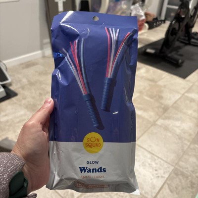[This review was collected as part of a promotion.] My little kids love glow sticks so I knew they would love the wands. This comes with four wands and a total of 24 glow sticks in three colors - red, white and blue. These were packaged very well to ensure no breakage of the glow sticks to preserve the glow. The kids had a blast breaking the glow sticks and placing them in their own wands. Super easy to hold and less bulky than bracelets and necklace glow sticks. These are a win and the wand can be reused with new glow sticks if you want! I received an incentive to write this review.