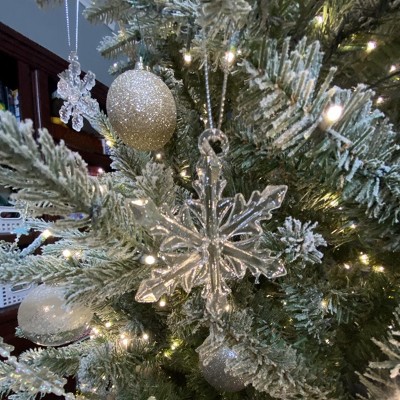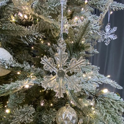 4E's Novelty 12 Pack Glass Snowflake Ornaments - Handcrafted Clear Icy Christmas Decorations, Sparkling Glass Ornaments for Your Christmas Tree.