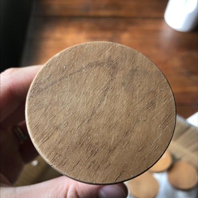 Q: Can you please tell me the diameter of the glass and the diameter of the wood top? I see 2.24 Inches listed, but is that the glass or the wood lid size? Thank you!