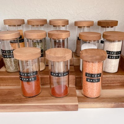 4oz 12pk Round Spice Jar with Wood Lids Set - Threshold™: Glass Condiment Servers, Hand Wash, Traditional Style