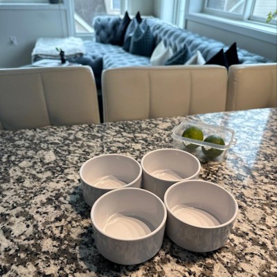 Make every gathering a hit by serving snacks in the 4-Piece 10-Ounce Cattlet Heavyweight Mini Snack Bowl from Threshold™. This white snack bowl pack is designed in a round shape to help provide the perfect base for snacks, cereals and other dishes, while integrating with rest of your serveware. Made with plastic, this BPA-free snack bowl set is dishwasher safe for quick cleaning, and microwave safe for reheating only.