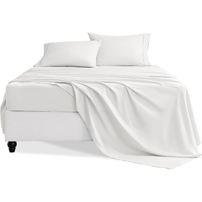 4PC Black Satin Queen Bed Sheets - Luxury Silky Wrinkle-Free Deep Pocket Set White-Queen