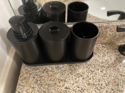 Includes: Soap/Lotion Dispenser, Toothbrush Holder, Bathroom Tray, Bath Canister