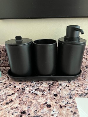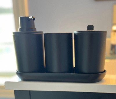 [This review was collected as part of a promotion.] This is a nice set. It looks great sitting on my bathroom vanity. The only issue that I have is that it is very lightweight and I prefer a heavier accessory set. But the color, functionality, and design are all on point.