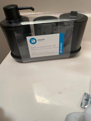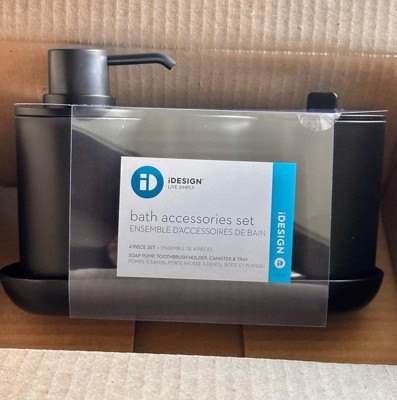 - The 4-Piece Bathroom Accessory Set from The Cade Collection by iDesign saves countertop space and acts as sink storage while bringing a cohesive look to your bathroom decor