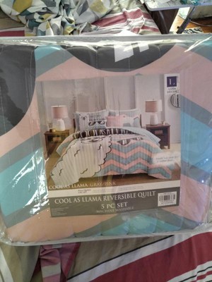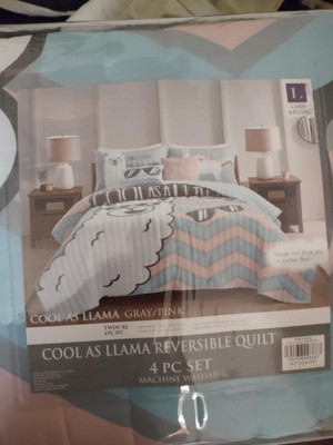 4pc Cool as Llama Kids' Quilt Set Gray/Pink - Lush Décor: Twin XL Girls Bedding, Llama Theme, Bedroom Decor