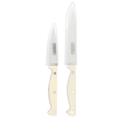 - Includes fork, knife, spoon and cream-color carrier