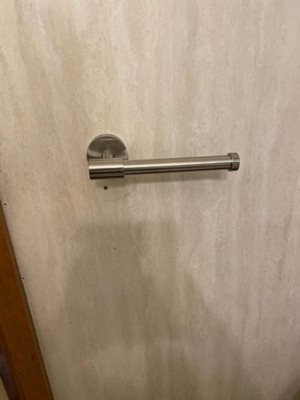 This bathroom kit is really nice and looks sleek while also being super stylish. It would go well with any bathroom decor/color combination. It is a 4 piece set that comes with a towel bar, towel ring, toilet paper holder and a robe hook. All were easy to install and didn’t take long at all to get them all installed.