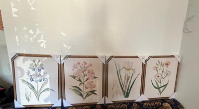[This review was collected as part of a promotion.] I cannot even begin to express how beautiful this 4 piece botanical illustration framed canvas wall art set is. The design is so amazing and the quality is definitely there! The frame choice for the canvas was perfect! They matched perfectly with my shower curtain that I already had and added so much more beauty to my bathroom. It almost feels like another room. I love them so much!