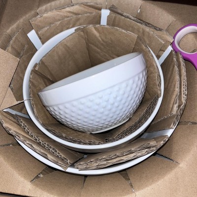 Tabletops Gallery 4pc Stoneware Hobnail Nesting Mixing Bowl Set: Ceramic Mixing Bowls, Off-White, Dishwasher-Safe
