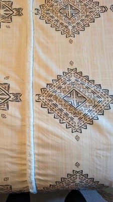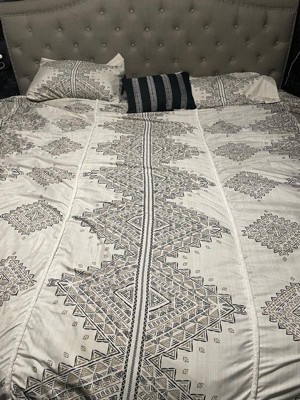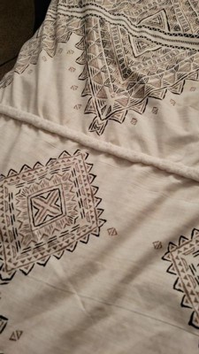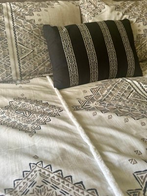 This Madison Park Triana soft microfiber artisan duvet cover set features a printed global inspired design of small triangular shapes and lines that when formed together depicts larger geometric shapes and stripes with two chenille trims. This duvet covers come with button closures and 4 inner ties to help keep your duvet insert secured (inserts sold separately).