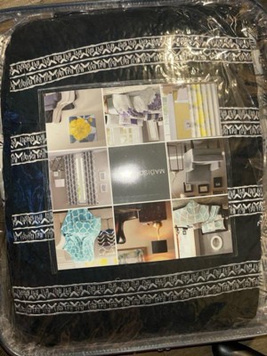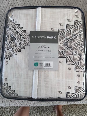 4pc Triana Printed Duvet Cover Set with Throw Pillow Black/Ivory - Madison Park
