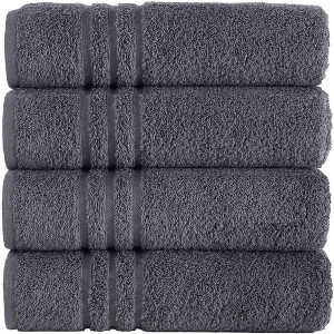 This 4-piece Turkish cotton bath towel set brings spa-like comfort to your daily routine. Crafted from 100% ring-spun cotton and woven at 600 GSM, each towel (27 in. x 54 in.) is ultra-soft, highly absorbent, and made to last. Designed for easy comfort, these towels are lightweight yet plush—perfect for morning routines, evening wind-downs, or post-workout refreshes. Double-stitched edges offer added durability, while the classic blck finish blends beautifully into any bathroom style.