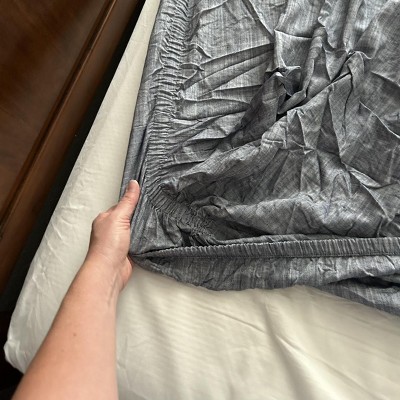 This is my favorite sheet set I’ve ever bought. It feels more linen-y than other brands and it stays on the bed well without the corners popping up. I have a king bed and also a 3” mattress foam topper and have never had an issue with the corners coming up.