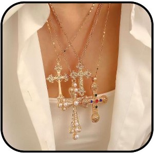 Y2K - Inspired Trendy Design: These 4pcs chunky cross necklaces for women are a nod to the iconic Y2K style. With their large long cross pendants, they make a bold statement. The gold and silver tones, along with pearl accents, create a captivating look that combines glamour and edginess. Whether you're reliving the Y2K era or simply love making a fashion statement, these pearl cross charm necklaces are perfect for adding a touch of nostalgia and trendiness to your outfit
