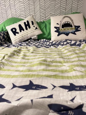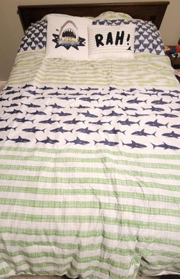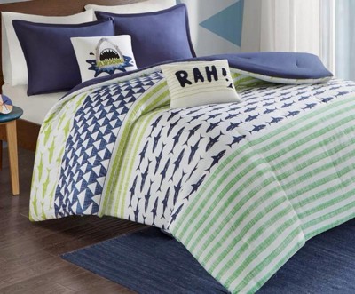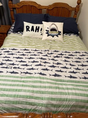 - Shark and stripe printed cotton comforter set