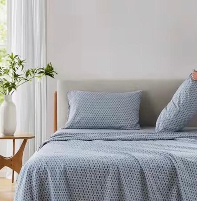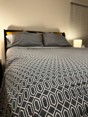 [This review was collected as part of a promotion.] These sheets are a lovely print in a queen size. Comes as a full set with top sheet, fitted sheet, and two standard shams. A perfect cotton set that is breathable, durable, and neutral.