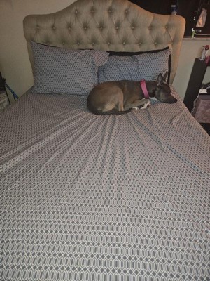 [This review was collected as part of a promotion.] Sturdy fabric, once I washed the sheets it softened just a bit but still maintained its shape. Not as soft or lightweight I expected but love that it’s thick. I like the geometric design and it’s an overall good quality bedsheets.