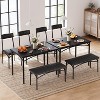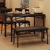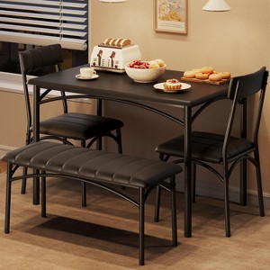 - Space-Saving Elegance: This rectangular dining table set for four is ideal for cozy spaces. Its sleek design allows the chairs and bench to tuck neatly underneath the table, maximizing your living area without sacrificing style or comfort