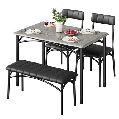 - Simple Assembly: The dinette set allows for quick assembly with labeled parts and clear instructions. This versatile table, with two upholstered chairs and a bench, fits perfectly in kitchens, dining rooms, and cafes, adding modern charm to any space