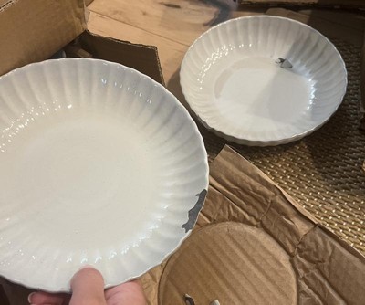 Update your dining setting with the pieces from this Scalloped Stoneware Collection from Hearth & Hand™ with Magnolia. From dinner and salad plates to serving and pasta bowls to spoon rests and more, this dinnerware collection features a variety of items showcasing scalloped rims and a glossy cream hue to bring functional style to your mealtimes. Great for everyday dining as well as special occasions, the pieces in this set are also microwave and dishwasher safe for added convenience.